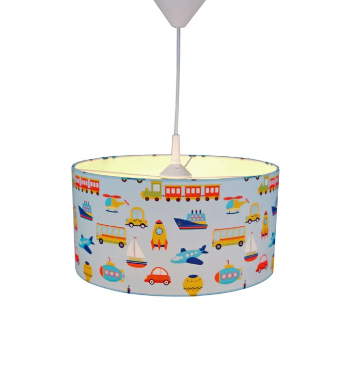 Die Pendellampe mit der AGL/Retrofit Fassung E27 bringt mit einem maximalen Verbrauch von 60 Watt ein warmes, angenehmes Licht ins Kinderzimmer. Passend zu allen hellen und kunterbunten Einrichtungen, ist das ein zeitloser Allrounder. Flugzeuge, Autos, Frachtschiffe, Züge und sogar Heißluftballons und Raketen bringen kleine Technikfans ins Schwärmen. Der Stoffschirm sorgt dafür, dass das Licht nicht blendet und angenehm indirekt im Raum verteilt wird.