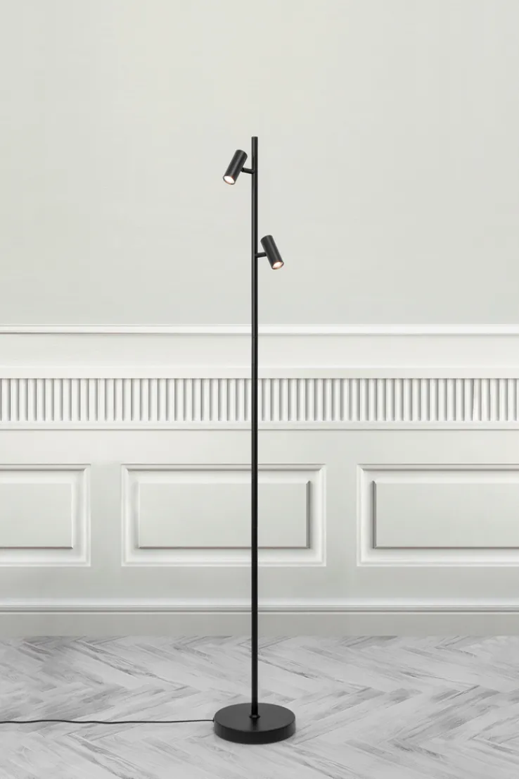 Die 2-flammige Nordlux LED Stehlampe OMARI ist 141 cm hoch, 20 cm breit und 20,6 cm tief. Sie ist aus schwarzem Metall, in 3 Stufen dimmbar und verfügt über eine Zuleitung von 150 cm.