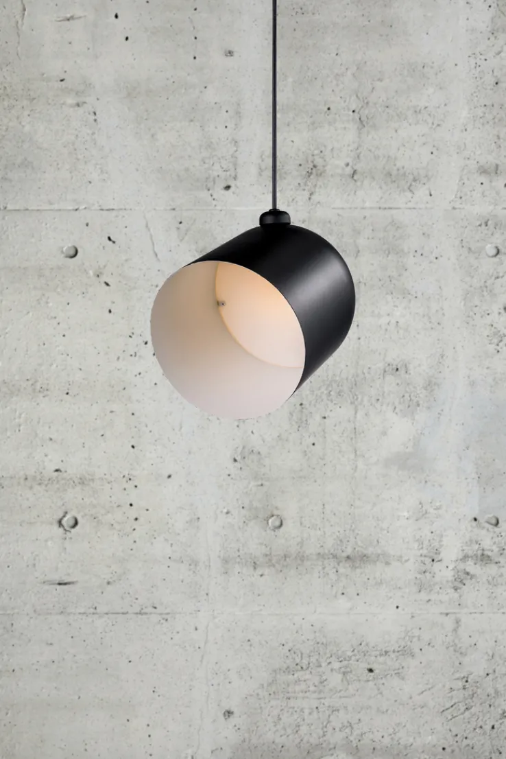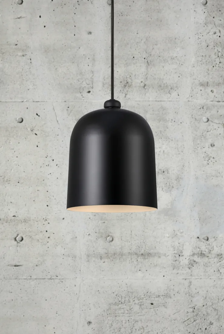 Die schwarze, einflammige Retrofit Pendelleuchte ANGLE von Nordlux zeichnet sich durch ihr schlichtes, modernes Design aus. Sie hat einen Durchmesser von 20,6 cm und sorgt in allen Wohnräumen für ein angenehmes Licht.