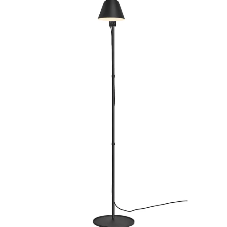 Der Schirm der Retrofit Stehlampe STAY aus dem Hause Nordlux befindet sich an einem schwenkbaren Arm auf dem Gestell mit Tellerfuß. Das ist nicht nur funktional, sondern auch ein Beispiel für ein gelungenes Industrial Design in moderner Ausprägung. Damit eignet sich das Modell perfekt als Leselampe oder auch als Schreibtischbeleuchtung. Ein wechselbares Leuchtmittel für E27-Fassungen dient dabei als Lichtquelle. Möglich ist eine Retrofit LED oder eine Glühlampe mit maximal 60 Watt.