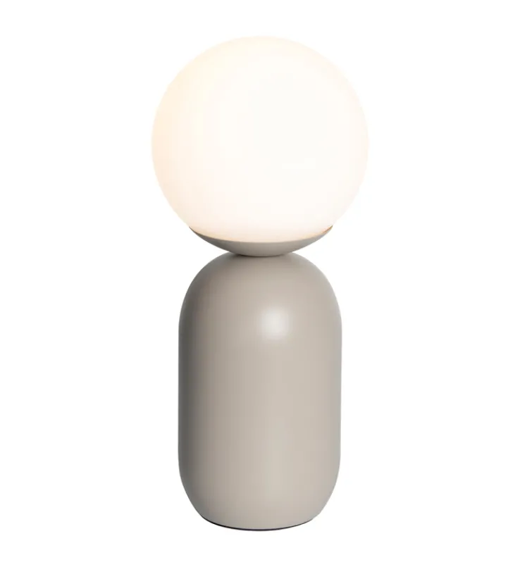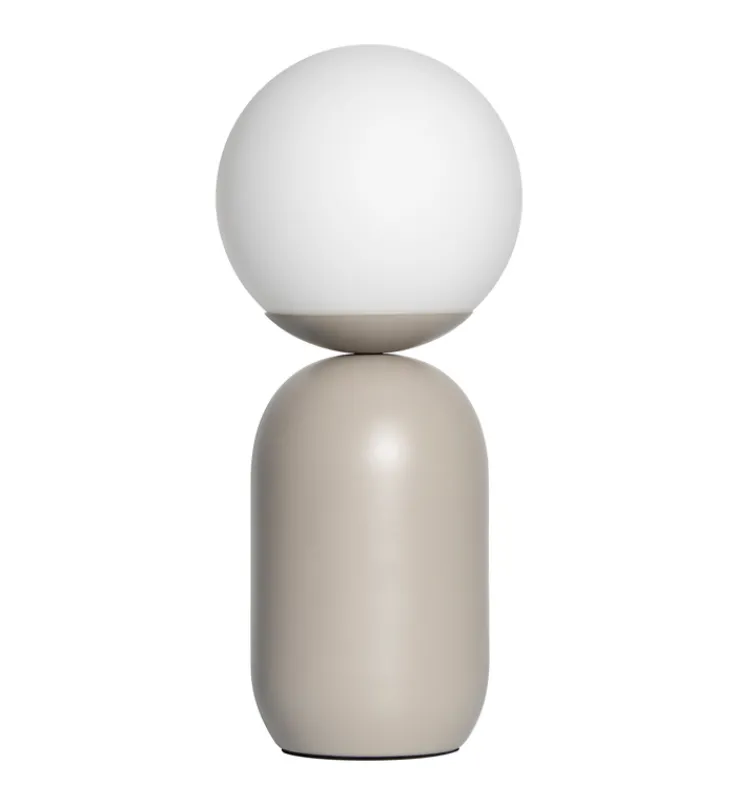 Das Label Nordlux hat mit der Retrofit Tischlampe NOTTI ein Modell im Programm, bei dem eine organische Komposition und ein modernes Design miteinander verschmelzen. Das Arrangement aus kapselförmigem Sockel und Milchglas-Kugelschirm überzeugt durch seine natürliche Einfachheit. Mit ihrem sanften Licht passt die Tischleuchte ausgezeichnet auf den Nachttisch, das Tischchen neben Sessel oder Sofa sowie als dekorativer Akzent in einen freien Bereich auf dem Bücherregal. Zum Betrieb erforderlich ist eine wechselbare E14 Retrofit LED oder Glühlampe. Die Leistung darf maximal 25 Watt betragen.