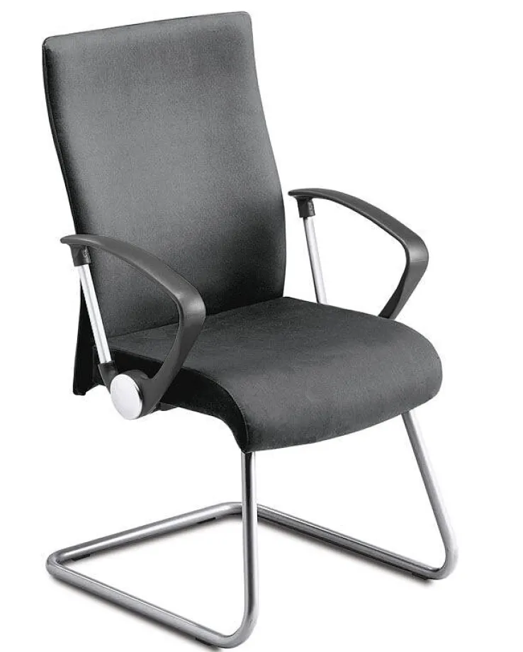 Das Gestell ist beim Besucherstuhl NEO in Metall mit chromglänzender Oberfläche ausgeführt. Der Sitz passt sich elegant an die Form des Gestells an und wird von einer ergonomisch geformten Rückenlehne begleitet. Sitz und Rücken zeichnen sich durch hochwertige Polster aus, die mit robustem Stoff in Schwarz bezogen sind. Zwei nach vorne geneigte Armlehnen erhöhen die Bequemlichkeit dieses Schwingstuhls um ein Weiteres. Ihr Gast kann den einladenden Komfort beispielsweise bei einer Besprechung im heimischen Büro oder im Konferenzzimmer Ihres Betriebs genießen.