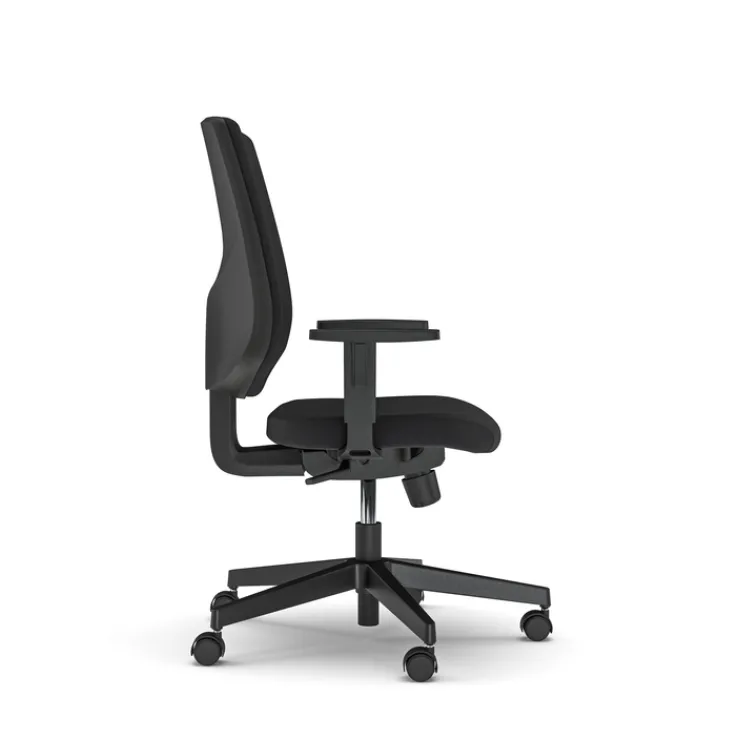 Der Bürostuhl NEXTER SWIVEL in Schwarz ist die ideale Lösung für komfortables Sitzen im Home-Office oder Büro. Der Bezug der Rückenlehne besteht aus dem strapazierfähigen Stoff Sempre, der Sitz ist gepolstert und das robuste Fußkreuz aus schwarzem Kunststoff sorgt für Stabilität.
