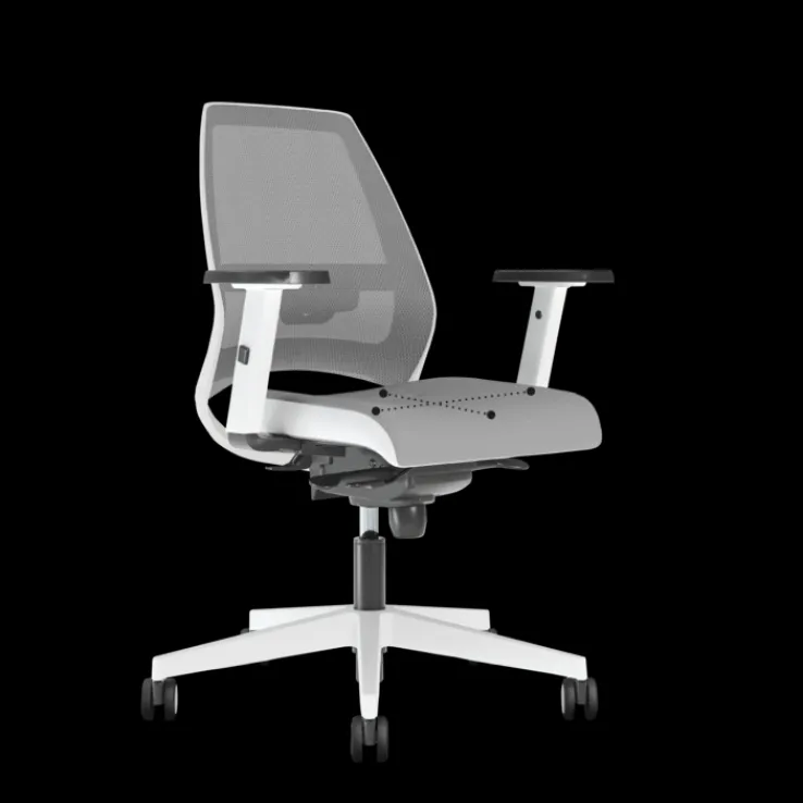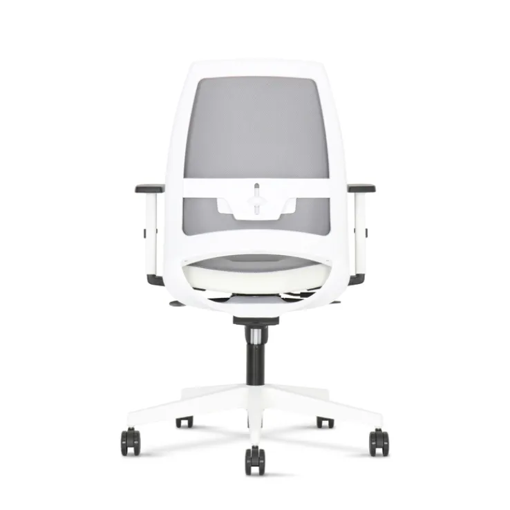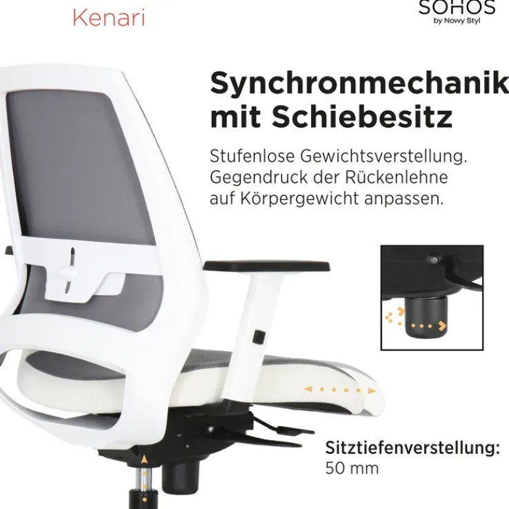 Der NOWY STYL Drehstuhl KENARI in der Farbkombination Weiß/Grau sorgt für Komfort im Homeoffice. Mit einer ergonomisch geformten Rückenlehne, Sitztiefenverstellung und Lumbalstütze ist der Schreibtischsessel auch bei langem Sitzen bequem.