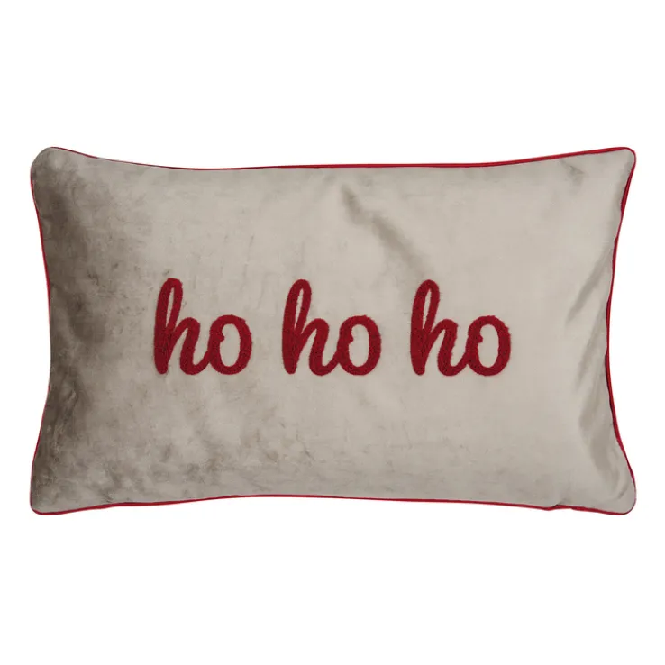 HO HO HO heißt es auf der zweifarbigen 30 x 50 cm großen Kissenhülle in roter Schrift. Das rechteckige weiße-rote Produkt ist mit einem Reißverschluss ausgestattet, welcher das Zierkissen sicher verschließt.