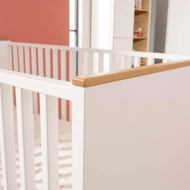 Das PAIDI Babybett LIEVEN besteht aus solider Holznachbildung in Kreideweiß und benötigt eine Stellfläche von 76,3 x 82 x 144 cm. Absetzungen in Eiche Montana verleihen ihm das gewisse Etwas. Das Kinderbett ist mit hohen Gittern ausgestattet, die Baby und Eltern höchste Sicherheit bieten. Mit den drei entfernbaren Schlupfsprossen ist sichergestellt, dass der Nachwuchs im Kleinkindalter selbstständig aus dem Bett klettern kann. Ein hochwertiger Lattenrost ist ebenfalls im Lieferumfang enthalten.