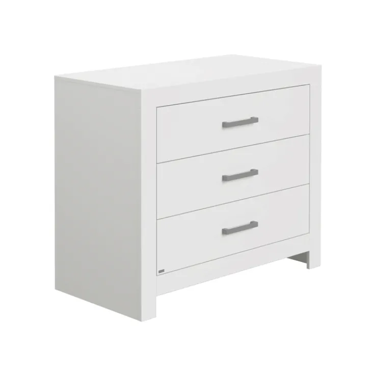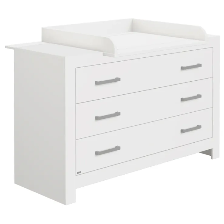 Die Wickelkommode FIONA von PAIDI mit Wickelaufsatz in der Farbe weiß präsentiert sich zeitlos elegant und ist für das modern eingerichtete Kinderzimmer gut geeignet. Die Kommode hat eine geradlinige Optik und passt sehr gut in bereits bestehende Einrichtungen. Drei große Schubkästen bieten viel Platz für Windeln, Wickelutensilien und Babykleidung. Der Wickelaufsatz ist einfach abnehmbar. Dadurch eignet sich die Wickelkommode später zum Unterbringen von Kleidern oder Spielzeug.