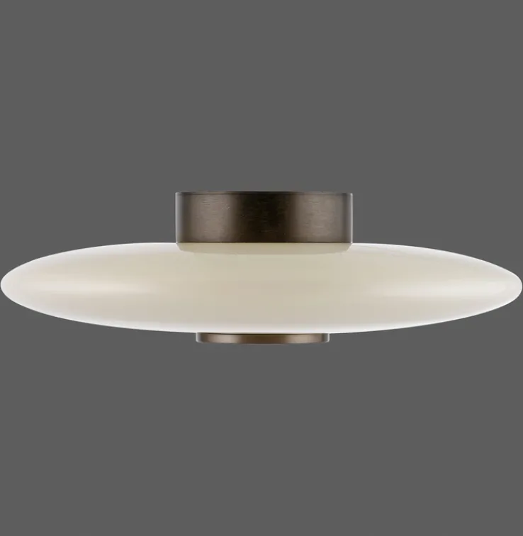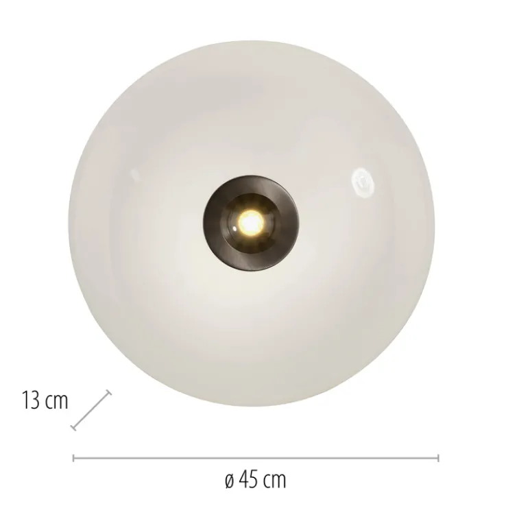 Ganze 45 cm misst der Durchmesser der LED Deckenlampe PURE VITRUM aus Glas und braunfarbigem Metall. Als Besonderheit bietet sie einen speziellen Lichteffekt.