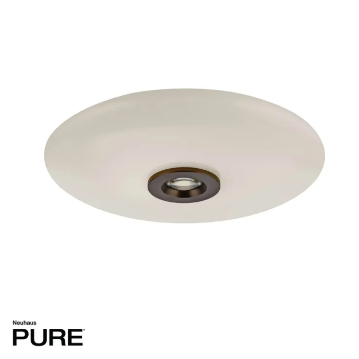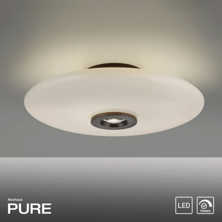 Das Label Paul Neuhaus hat mit der LED Deckenlampe PURE VITRUM ein Modell im Programm, dass sich mit seinem ebenso klassischen wie modernen Design und seiner flachen ovalen Form harmonisch an die Decke schmiegt. Zwei fest eingebaute LED-Leuchtmittel, 8,8 Watt und 8,3 Watt, bringen bei rund 17 Watt und warmweißen 2.700 Kelvin eine Lichtleistung von bis zu 1.548 Lumen. Die Helligkeit ist dimmbar und teilt sich in ein sanftes Umgebungslicht sowie einen direkten Licht-Spot nach unten.
