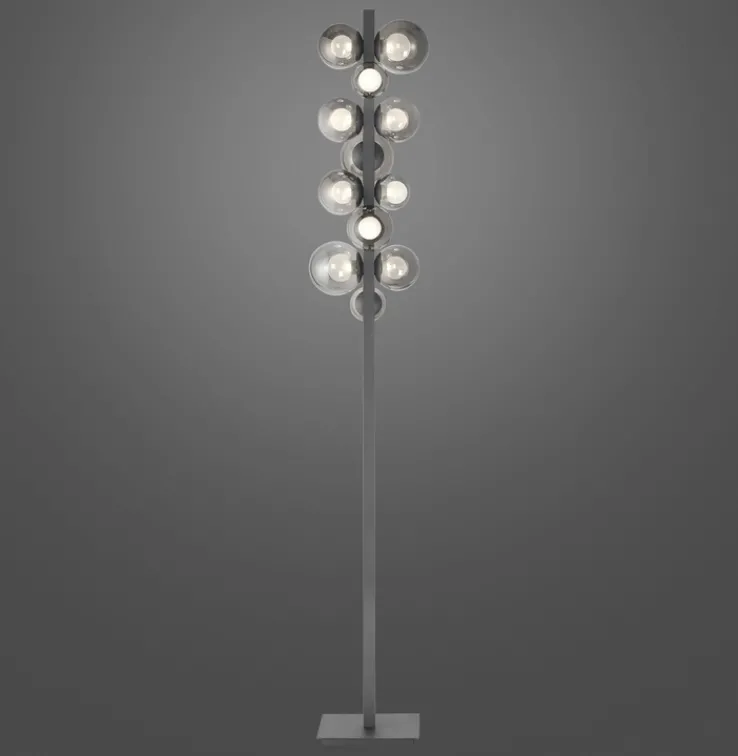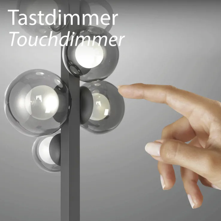 Das deutsche Design der LED Stehlampe PURE POPUP von Paul Neuhaus ist ebenso klassisch wie modern. Zudem sorgt der 12-flammige Aufbau für eine glanzvolle Erscheinung. Die 12 fest eingebauten LED-Leuchtmittel mit jeweils 2,4 Watt befinden sich in Kugeln aus hochwertigem Rauchglas. Zusammen bringen sie es auf eine Leistung von 28 Watt sowie eine dimmbare Helligkeit von bis zu 3.456 Lumen. Als weitere Besonderheit ist die Farbtemperatur der LEDs zwischen 2.700 und 5.000 Kelvin beziehungsweise von Warmweiß bis Neutralweiß einstellbar.