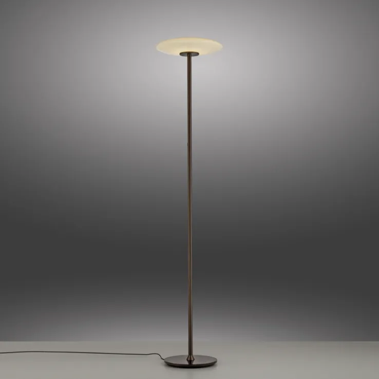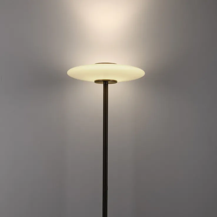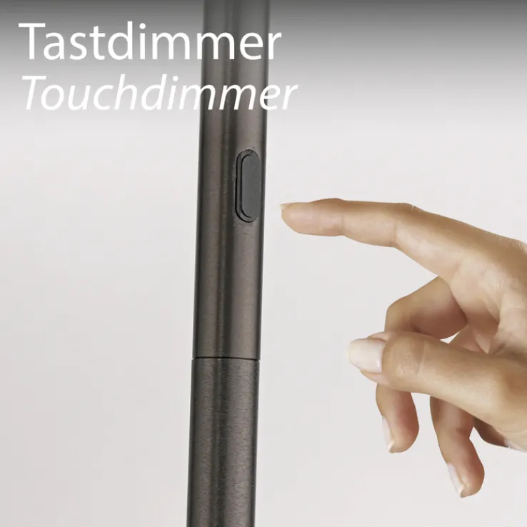 Bei einer Breite von 32 cm ist die LED Stehlampe PURE VITRUM 180 cm hoch. Sie besteht aus braunfarbigem Metall und wertvollem Opalglas. Praktisch: Die Stehleuchte ist über einen Tastdimmer einstellbar.
