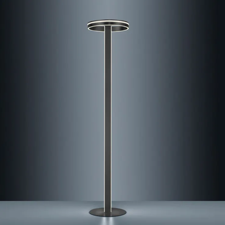 Ob im Wohn- oder Schlafzimmer: Besonders in moderne Räume fügt sich die in Anthrazit gehaltene Stehlampe von Paul Neuhaus mit Leichtigkeit ein. Der Schirm der 3-flammigen Lampe lässt sich verstellen, um ideale Lichtverhältnisse entstehen zu lassen. Doch auch das Licht selbst kann mithilfe der Fernbedienung reguliert werden. Sowohl die Lichtfarbe als auch die Lichthelligkeit sind anpassbar. Die für die Beleuchtung erforderlichen LEDs sind bereits fest verbaut und helfen, möglichst wenig Strom zu verbrauchen.
