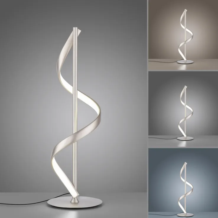 Die silberfarbige LED-Tischleuchte Q-SWING 15,5 cm aus Stahl setzt Maßstäbe: Der geschwungene Lichtstab beeindruckt optisch und spendet zugleich angenehmes Licht, das Nutzer per mitgelieferter Fernbedienung individuell einstellen.