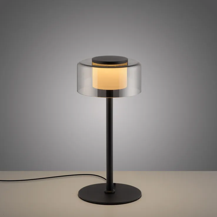Mit dem Modell RIKA 15 cm präsentiert die Marke Paul Neuhaus eine schwarze LED-Tischleuchte, die mit ihrem schlichten Lampenschirm aus Rauchglas gefällt. Nutzer dimmen das Licht mit einem Touchdimmer, eine Memory-Funktion erleichtert die Handhabung.