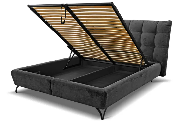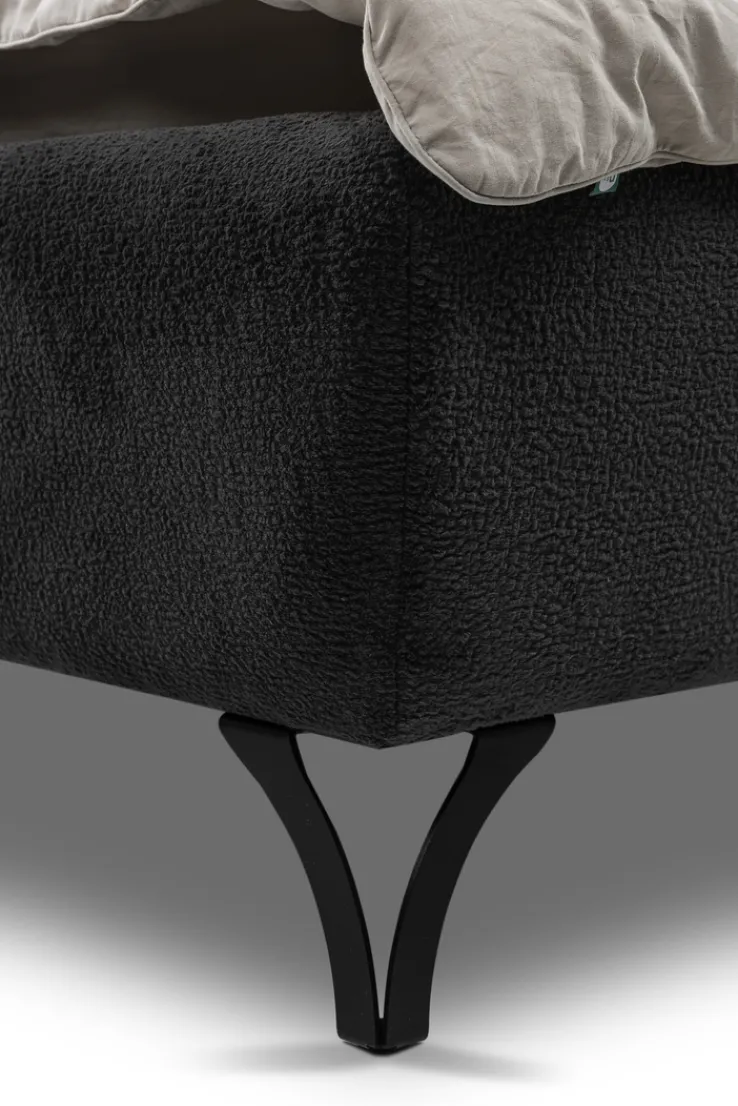 Ebenfalls ein Blickfang sind beim Polsterbett ERATO die filigranen Standfüße. Komplett gebogen geformt, verleihen sie dem Bett eine filigrane Raumwirkung. Bettkästen sind bei dem Polsterbett ebenfalls enthalten und kreieren damit selbst in kleineren Schlafzimmern zusätzlichen Stauraum. Lattenroste sind hier schon inklusive, bei der Wahl der Matratze bleiben unsere Kunden indes flexibel.
