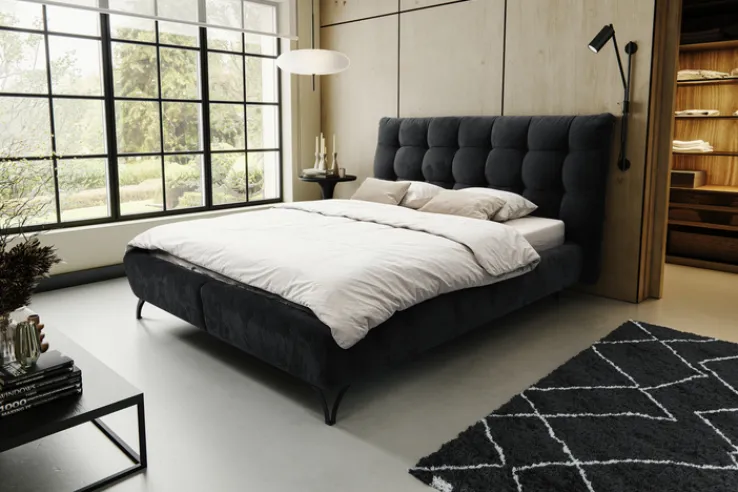 Das 180 x 200 cm große ERATO Polsterbett in Graphit schafft eine super Grundlage für eine erholsame Nacht. Selbst wenn es gerade aber nicht in Benutzung ist, ist das Bett zweifelsfrei ein Hingucker. Allen voran aufgrund der leicht angeschrägten und stark gesteppten Kopfpartie, die dem Bettdesign zusätzliche Tiefe und einen modernen Akzent verleiht.