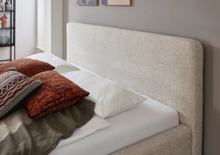 Es ist unglaublich schick und stilvoll im Design – das beige Polsterbett MATTIS mit seinen Abmessungen von 180 cm x 200 cm lädt zum Kuscheln, Genießen, Träumen und Schlafen geradezu ein. Der Stoffbezug aus robustem Polyester ist ausgesprochen hochwertig. Ebenso wie das massive Eichenholz, aus dem das Gestell gefertigt ist. Praktischerweise zeichnet sich das attraktive Polsterbett MATTIS durch eine sehr bequeme Einstiegshöhe aus.