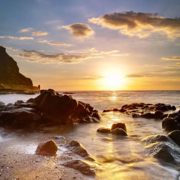 Das PRO ART Glas Art Bild ISLAND sorgt für eine herrlich romantische Atmosphäre und verbreitet gleichzeitig eine tolle Urlaubsstimmung. Dank der warmen Farbgebung sorgt es außerdem für ein wohnliches Ambiente. Auf dem PRO ART Glas Art Bild ISLAND ist der Blick von einem wunderschönen Strand auf das abendliche Meer zu sehen. Vereinzelte Felsen lassen die Szenerie besonders natürlich und rau erscheinen. Am Horizont ist die Sonne kurz davor im Meer zu versinken, sodass sie wie ein glühender Feuerball über dem Wasser schwebt und alles in ein wunderschönes goldrotes Licht taucht. Dadurch wirkt das Bild herrlich romantisch. Es eignet sich hervorragend für das Wohnzimmer oder für das Schlafzimmer. Da es keinen sichtbaren Rahmen besitzt, kann es in nahezu jede Einrichtung integriert werden. Sie können das PRO ART Glas Art Bild ISLAND beispielsweise wunderbar mit minimalistischen Möbeln kombinieren. Es passt aber auch zu klassischen Wohnkonzepten oder zu rustikalen Massivholzmöbeln. Als Material wurde hochwertiges Floatglas verwendet, sodass das Bild eine sehr edle Ausstrahlung hat. Außerdem bringt das Glas die intensiven Farben hervorragend zur Geltung.