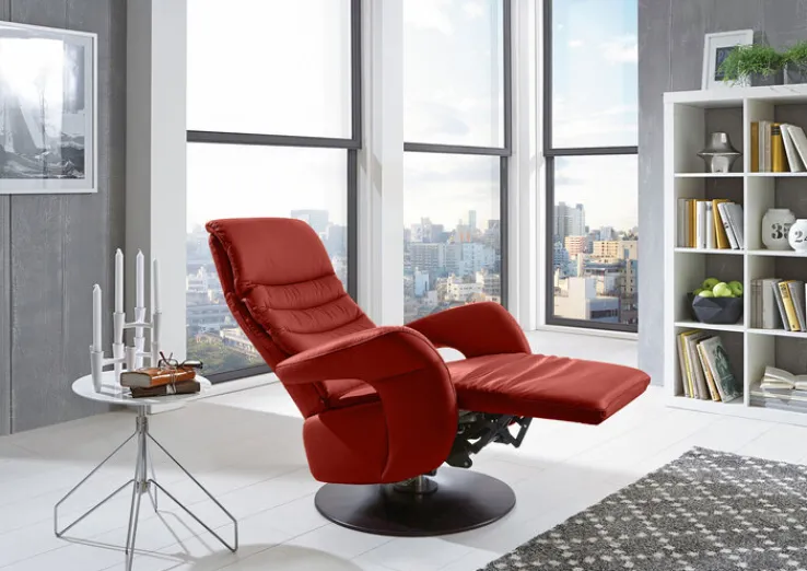 Der elegante PURO Fernsehsessel CERGY S1-V1 präsentiert sich in der Form eines klassischen Relaxsessels mit verstellbarer Rückenlehne. Mit einem attraktiven Lederbezug im Farbton Ziegel ist der Sessel sehr gut in bereits bestehende Wohnkonzepte integrierbar. Der komfortable Sessel passt sowohl in klassische oder moderne Wohn- oder Fernsehzimmer. In der Raummitte platziert ist er ein Blickfang und fällt sofort ins Auge.