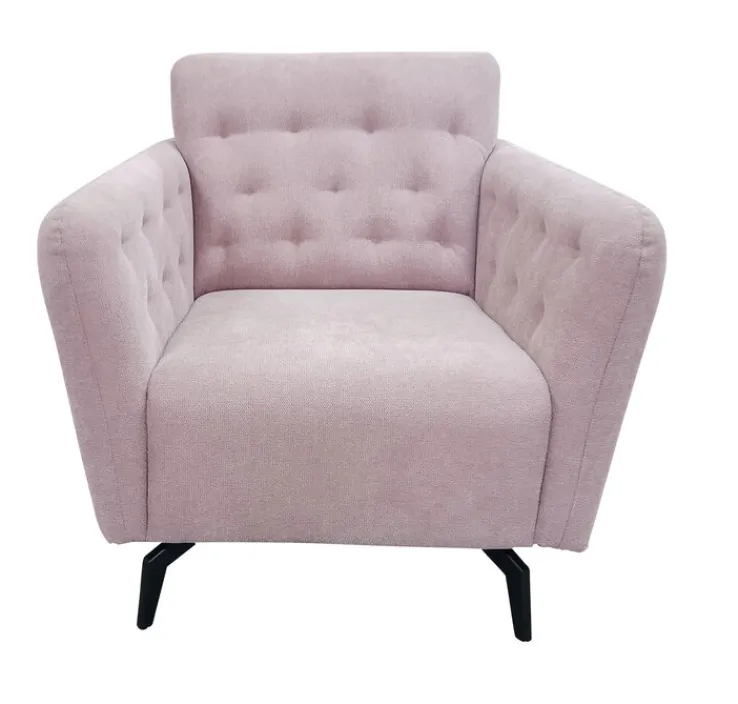 Der rosa Cocktailsessel LEWIS des Herstellers QUARTIER überzeugt durch seine gesteppten Akzente und seine wunderbar komfortable Polsterung. Er ist 86 cm breit und hat eine Sitzhöhe von 45 cm. Die Füße bestehen aus schwarz beschichtetem Metall.