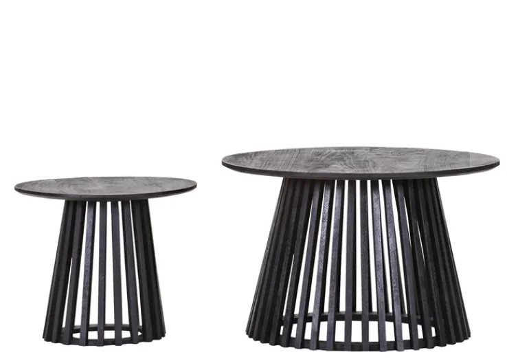 Das Couchtisch Set CORBY 2-teilig schwarz besteht aus je einer runden Platte und einem Säulengestell. Die Ablagefläche des großen Tisches hat einen Durchmesser von 70 cm, während der Durchmesser des kleinen 43 cm beträgt. Optisch sind die Couchtische identisch, so dass sie in modernen Wohninnenräumen ein perfektes Match bilden.