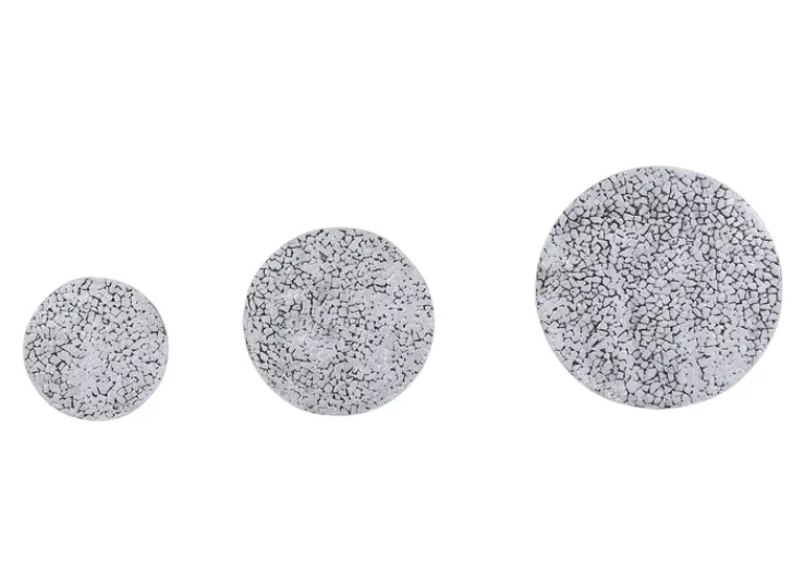 Die Maße der Tische variieren, um unterschiedliche Bedürfnisse zu erfüllen: Der größte Tisch hat einen Durchmesser von 51 cm und eine Höhe von 44 cm, der mittlere Tisch misst 40 cm im Durchmesser bei einer Höhe von 38 cm, und der kleinste Tisch hat einen Durchmesser von 30 cm und eine Höhe von 31 cm. Diese Größenvielfalt ermöglicht es, die Tische sowohl zusammen als auch einzeln in verschiedenen Räumen zu nutzen. Die klare Formensprache und die hochwertige Verarbeitung machen das Set zu einem stilvollen und funktionalen Element in jedem Wohnbereich.