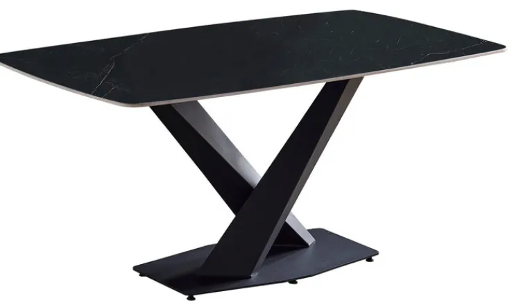 Der Tisch mit dem Untergestell aus Metall, das als breites Kreuz mit einer stabilen Bodenplatte gearbeitet ist, sieht sowohl im Esszimmer als auch in der kleinen Essecke gut aus. Die dunkle Farbe passt zu vielen modernen und klassischen Einrichtungsstilen. Sowohl die Tischplatte aus Keramik als auch das Gestell sind rasch von Staub befreit.