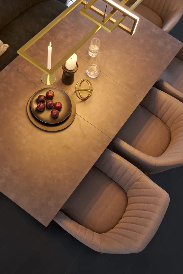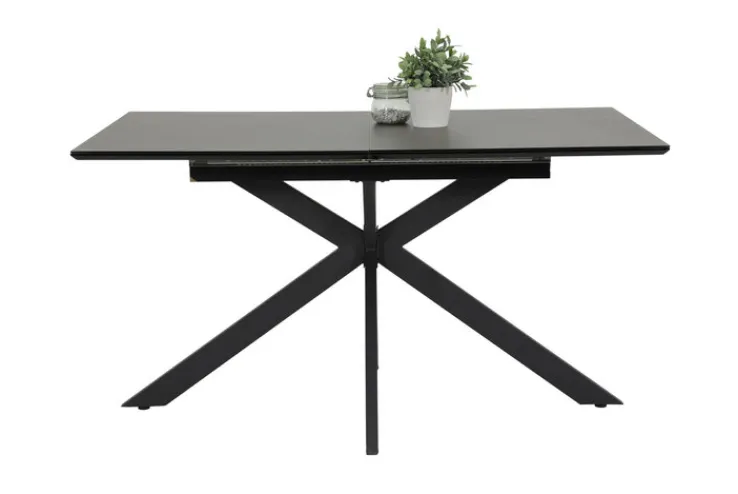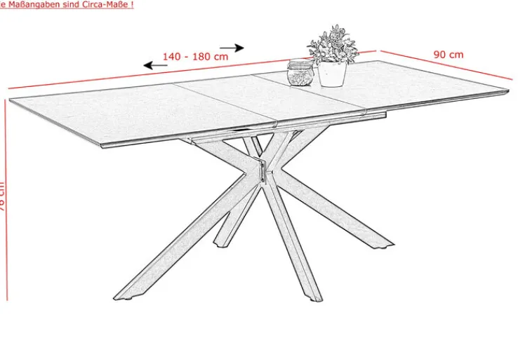 Der Esstisch CHANDLER kombiniert das schwarz pulverbeschichtete Spinngestell aus Metall mit einer Tischplatte mit Schweizer Kante und einer aufliegenden Glasplatte, die mit einer edlen Keramikoptik überzeugt. Mittels Synchronauszug und einer innenliegenden Einlegeplatte lässt sich die Tischplatte mit wenigen Handgriffen von 140 cm auf 180 cm verlängern. Somit lassen sich auch Überraschungs-Gäste jederzeit willkommen heißen. Ein Vorteil des Tisches ist auch das edle Design, mit dem er sich problemlos in viele Essbereiche integrieren lässt.