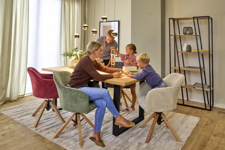 Das U-Gestell aus pulverbeschichtetem Metall sorgt für Stabilität und verleiht dem Tisch einen modernen, industriellen Look. Die rechteckige Form des Tisches passt sich vielseitig in verschiedene Wohnstile ein und macht ihn zu einem zeitlosen Möbelstück. Mit einer Höhe von 76 cm und einem Gewicht von 54 kg ist der Tisch robust und langlebig. Dieser Esstisch ist die perfekte Wahl für alle, die Wert auf Qualität und Design legen.