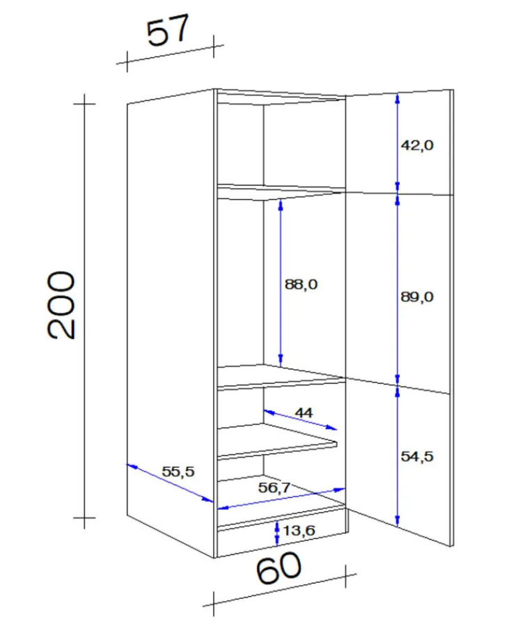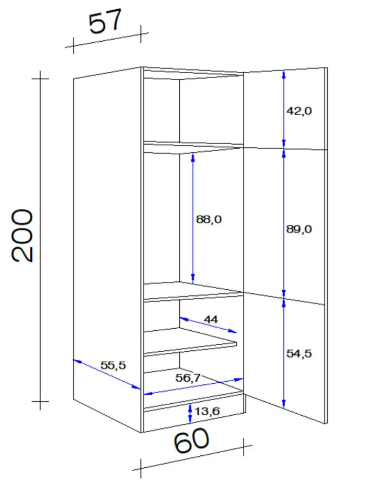 Breite: 60 cmHöhe: 200 cmTiefe/Ausladung: 57 cmGewicht: 54,10 kg