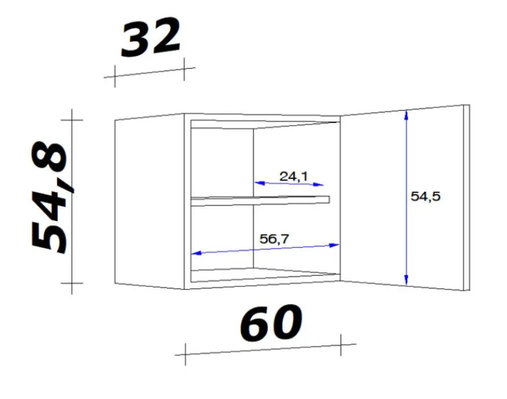 Breite: 60 cmHöhe: 54 cmTiefe/Ausladung: 32 cmLänge: 32 cm