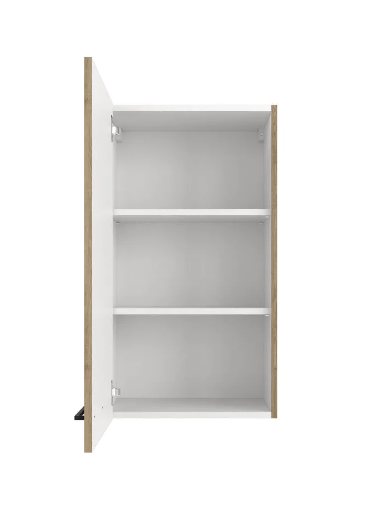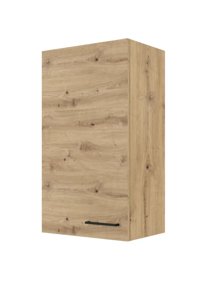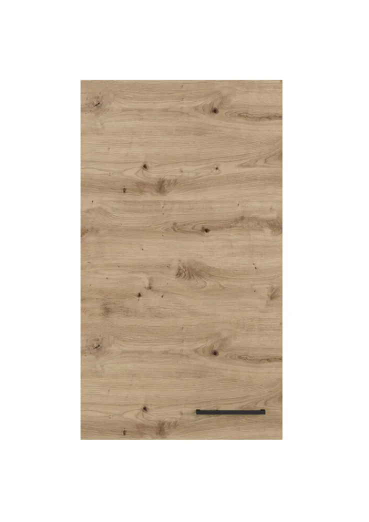 Der Hängeschrank für die Küche bietet eine praktische und stilvolle Lösung für Ihre Aufbewahrungsbedürfnisse. Mit einer Breite von 50 cm, einer Höhe von 89 cm und einer Tiefe von 32 cm passt er perfekt in verschiedene Küchenlayouts. Der Schrank verfügt über eine Drehtür und zwei Einlegeböden, die ausreichend Platz für Geschirr und Küchenutensilien bieten. Das Design des Schranks ist in einem ansprechenden Braunton gehalten, der die natürliche Optik von Eichenholz nachbildet. Die Oberfläche zeigt eine detailreiche Artisan Eiche Nachbildung, die dem Schrank eine warme und einladende Ausstrahlung verleiht. Der Korpus besteht aus einer robusten Holznachbildung, die mit Melaminharz beschichtet ist, um Langlebigkeit und einfache Pflege zu gewährleisten. Dieser Hängeschrank ist aus Spanplatte gefertigt, was ihn zu einer soliden und kostengünstigen Wahl für Ihre Küche macht. Die Kombination aus Funktionalität und ästhetischem Design macht diesen Schrank zu einer idealen Ergänzung für moderne und traditionelle Küchenstile.