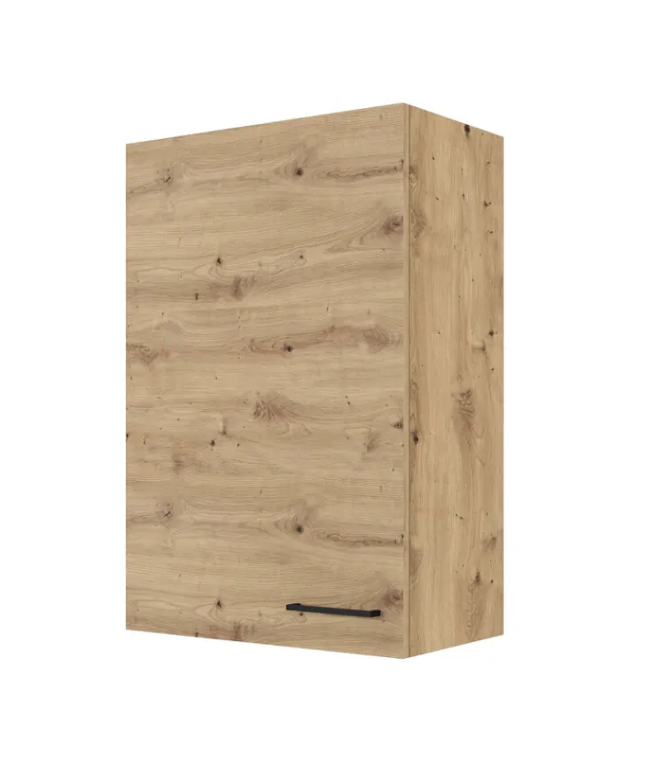 Der Hängeschrank für die Küche besticht durch sein modernes Design und die hochwertige Nachbildung von Artisan Eiche. Die Front zeigt eine natürliche Holzmaserung, die dem Schrank eine warme und einladende Optik verleiht. Der Korpus ist in einem eleganten Weiß gehalten, was einen ansprechenden Kontrast zur Holzoptik bietet. Mit einer Breite von 60 cm, einer Höhe von 89 cm und einer Tiefe von 32 cm bietet der Schrank ausreichend Stauraum für Küchenutensilien.