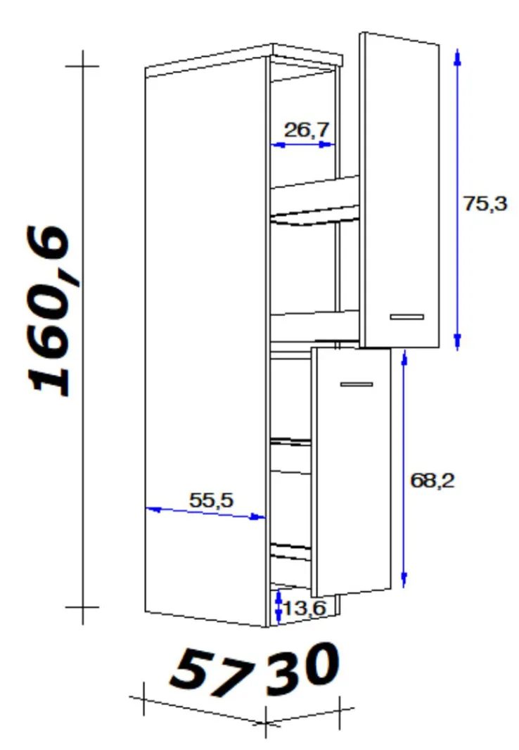 Apothekerschrank AVILA ist das Raumwunder der gleichnamigen Küchenserie. Und das, obwohl der 30 cm breite und 161 cm hohe Schrank selbst kaum Platz benötigt. Doch die raffinierte Konstruktion der beiden Auszüge erlaubt es, jede Menge Vorräte auf den insgesamt vier Ablagen ordentlich anzuordnen und unterzubringen.