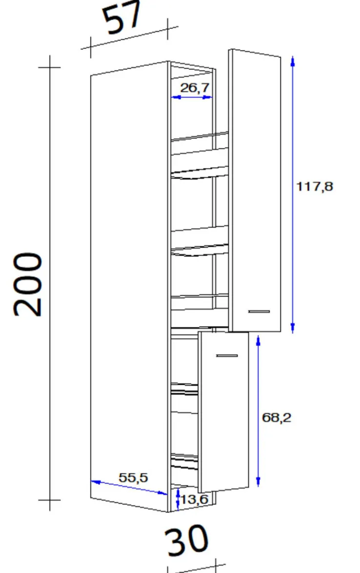 Breite: 30 cmHöhe: 200 cmTiefe/Ausladung: 57 cmGewicht: 52,10 kg