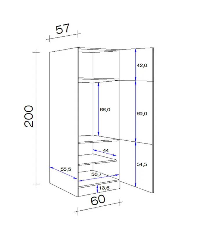 Der Geräteumbauschrank LUCCA mit einer Höhe von 200 cm und in der Farbe Weiß ist für Küchen im modernen, puristischen Design vorgesehen und ein ganz besonderes Modell. Er bietet umfangreichen Platz und eine Nische, in der sich ein integrierter Kühlschrank platzieren lässt. So ist der Kühlschrank auf den ersten Blick nicht als solcher zu erkennen. Die Küchenansicht bleibt harmonisch und ausgesprochen elegant. Das mit einem Einlegeboden ausgestattete Modell kommt außerdem mit einem Lüftungsgitter daher.