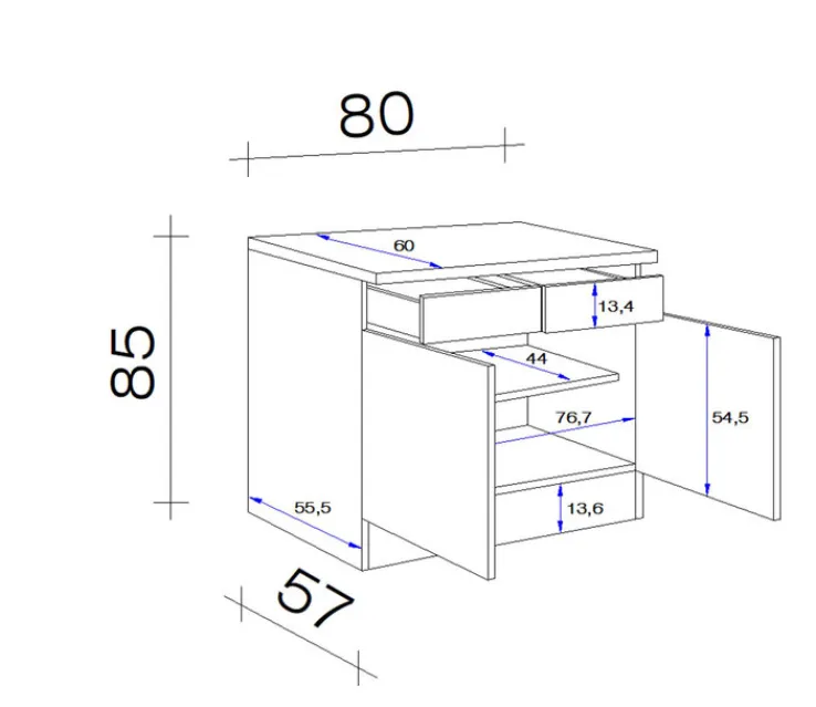 Breite: 80 cmHöhe: 85 cmTiefe/Ausladung: 60 cmGewicht: 42,3 kg