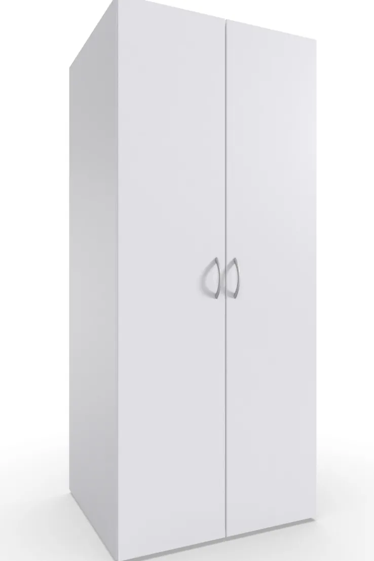 Mit einer Breite von 80 cm, einer Höhe von 185 cm und einer Tiefe von 68 cm passt er ideal in verschiedene Wohnräume. Der Schrank ist in einem schlichten Weiß gehalten, was ihm ein zeitloses und elegantes Aussehen verleiht.