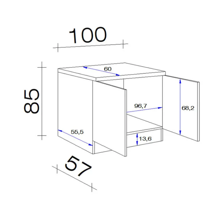 Breite: 100 cmHöhe: 85 cmTiefe/Ausladung: 60 cmLänge: 57 cmGewicht: 39,30 kg