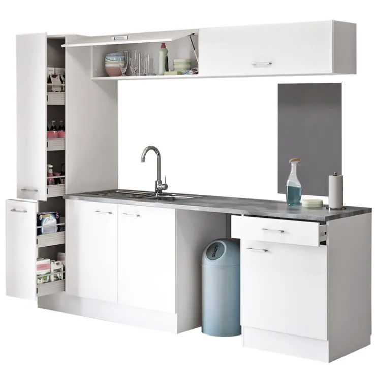 Der weiße Spülenunterschrank PETE mit Edelstahl-Einbauspüle besticht auf den ersten Blick durch sein schlichtes, modernes Design, das die Küche elegant und freundlich wirken lässt. Gleichzeitig bietet er wertvollen Stauraum.