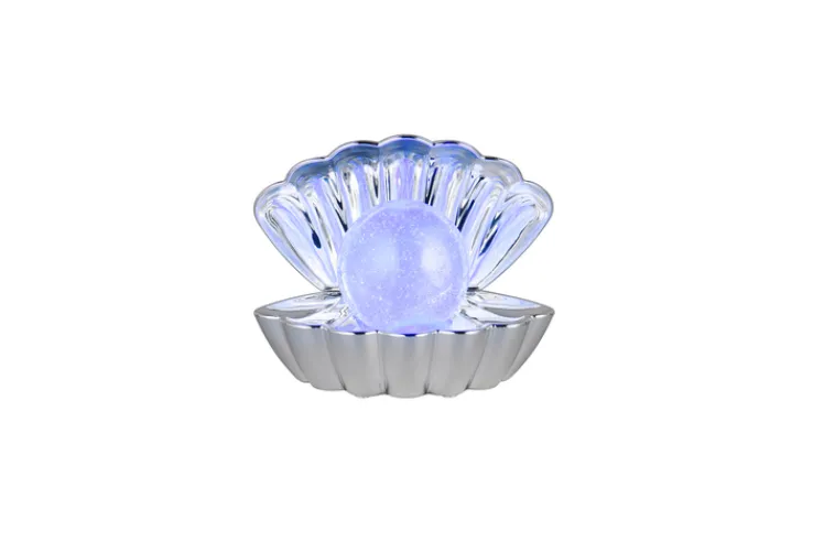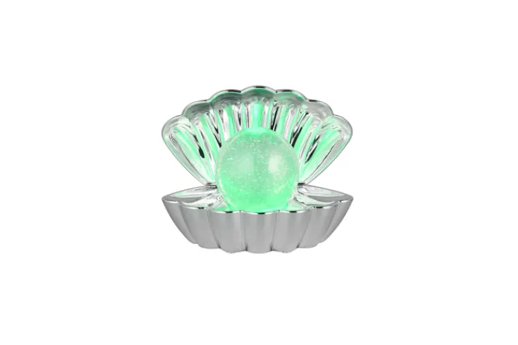 Die Dekoleuchte SHELLY von Reality RL vereint stilvolles Design mit praktischer Funktionalität. Diese Leuchte besticht durch ihre organische Form, die an eine geöffnete Muschel erinnert, und ist in einem eleganten Chromfarbton gehalten. Das Gehäuse aus Kunststoff verleiht der Leuchte eine glamouröse Ausstrahlung, die sich perfekt in moderne Wohnräume einfügt. Mit einer Breite von 17,5 cm, einer Höhe von 14,5 cm und einer Tiefe von 12,5 cm ist sie kompakt und vielseitig einsetzbar. Die fest eingebaute LED-Beleuchtung bietet eine Lichtleistung von 15 Lumen bei einem Energieverbrauch von nur 0,8 Watt. Ein besonderes Highlight ist der integrierte Farbwechsler, der sanft zwischen den Farben Rot, Grün und Blau wechselt und so für eine stimmungsvolle Atmosphäre sorgt. Die Leuchte ist mobil einsetzbar und kann über einen USB-Anschluss betrieben werden, was sie besonders flexibel macht. Sie gehört zur Schutzklasse 3 und hat die Schutzart IP20, was sie für den Innenbereich geeignet macht. Ein Ein-/Ausschalter ist ebenfalls integriert, um die Bedienung zu erleichtern.