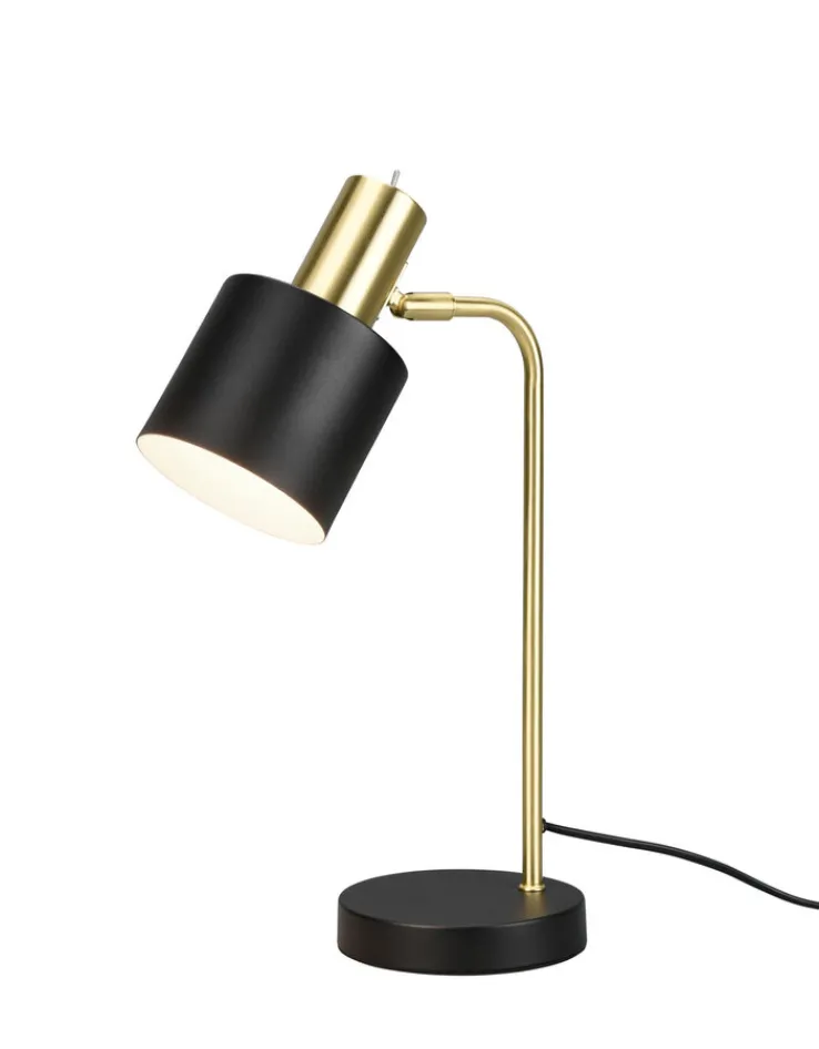Die 1-flammige Retrofit Tischlampe ADAM von RL überzeugt mit schwarz- und messingfarbigen Details und passt in moderne Einrichtungen. Durch die glänzenden Oberflächen und den zylindrischen Schirm ist die elegante Lampe ein Blickfang auf dem Beistelltisch im Wohnzimmer oder auch auf einer Nachtkonsole im Schlafbereich. Mit dem passenden Leuchtmittel ausgestattet sorgt die schöne Tischlampe stets für eine angenehme Beleuchtung.