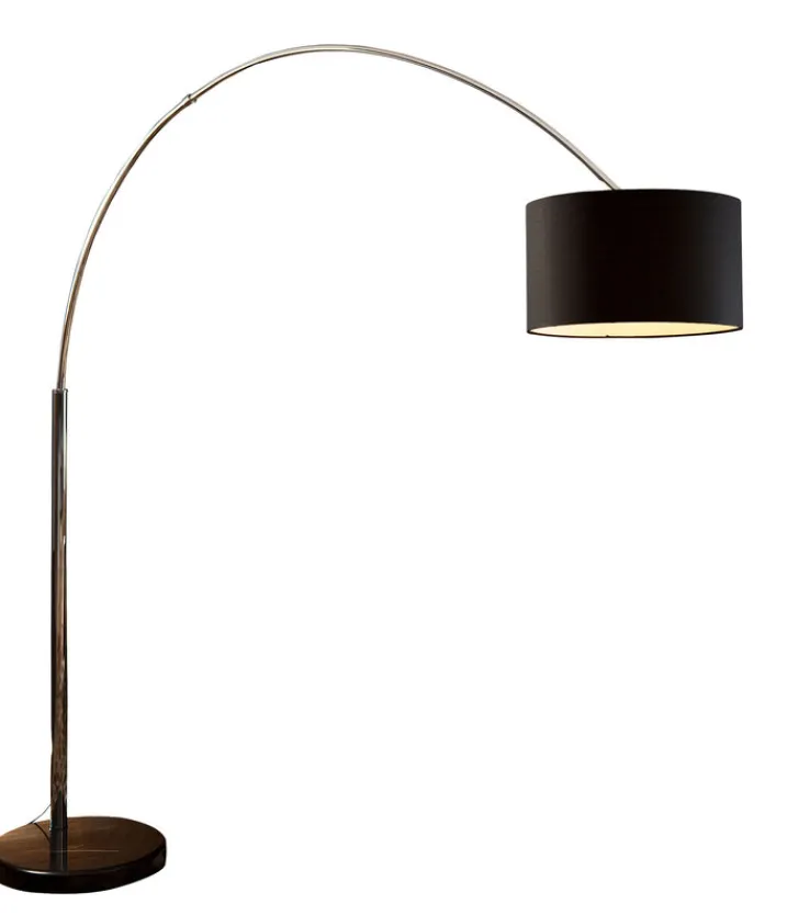 Mit ihrem unverkennbaren Retrocharme ist die Bogenlampe „Retrofit“ in Schwarz ein 201 cm großer Hingucker, der in einer zweiten Variante auch noch mit weißem Korpus und Lampenschirm erhältlich ist. Mit ihrer schlanken Silhouette, einem runden Marmor-Standfuß und rundem Lampenschirm aus Stoff greift die Bogenlampe zeitlose Designtrends auf – und fügt sich auch dort geschickt ein, wo weniger Platz vorhanden ist.
