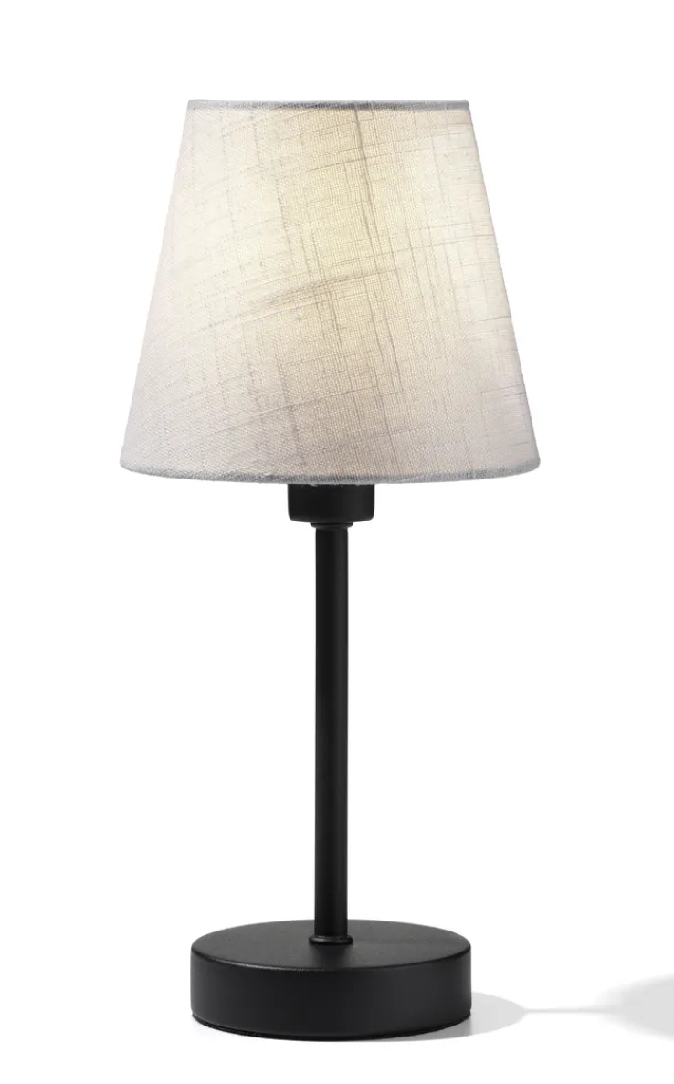 Die Tischlampe BIBO vereint klassisches Design mit funktionaler Beleuchtung. Mit einer Höhe von 32 cm und einem Durchmesser von 15 cm passt sie perfekt auf jeden Tisch. Der konische, runde Lampenschirm in weiß sorgt für eine angenehme Lichtverteilung und ergänzt das schwarze Metallgestell harmonisch. Diese Lampe ist mit einer E14-Fassung ausgestattet und unterstützt sowohl AGL als auch Retrofit-LEDs, die einfach ausgetauscht werden können. Der Energieverbrauch beträgt maximal 40 W. Ein praktischer Schnurschalter ermöglicht ein einfaches Ein- und Ausschalten. Die Kombination aus Metall und Kunststoff verleiht der Lampe Stabilität und Langlebigkeit.