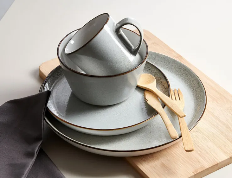 Zum 16-teiligen Ritzenhoff & Breker Kombiservice VISBY gehören 4 große Kaffeebecher mit je 400 ml Fassungsvermögen, 4 flache Teller mit einem Durchmesser von 26,5 cm, 4 Dessertteller mit 20,5 cm Durchmesser und 4 Schalen, die 8 cm hoch sind. Das Kombiservice für 4 Personen ist aus Steinzeug gefertigt und kann in der Spülmaschine gereinigt werden.