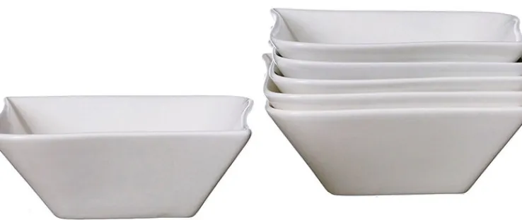 Weiß passt immer. Diese Schalen lassen sich mit jedem denkbaren Geschirr kombinieren. Das ist wichtig, denn Müslischalen gehören zu den praktischsten Geschirrteilen überhaupt. Morgens genießt man sein Müsli, zum Mittagessen kann ein kleiner Obstsalat als Dessert gereicht werden, abends füllt man etwas Salat hinein. Bei einem Buffet dient die Schale als Gefäß für leckere Dips. Die schicke Form mit zwei runden und zwei spitzen Ecken spricht jeden an.
