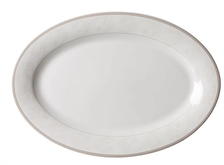 Ob kleine Törtchen oder leckere Häppchen, mit dieser Platte aus der ISABELLA Serie servieren Sie Ihren Gästen verschiedene Köstlichkeiten auf besonders stilvolle Weise. Die Platte zeichnet sich durch zarte, elfenbeinfarbene Ornamente und einer Maße von einundzwanzig mal zweiunddreißig Zentimetern aus. Die Geschirrserie ISABELLA lässt sich dank der dezenten Gestaltung vielseitig mit anderen Farben und Formen kombinieren. ISABELLA ist das perfekte Geschirr für besonders festliche Gelegenheiten wie Konfirmation, Kommunion, Hochzeit oder Weihnachten. Die komplette Kollektion ist aus hochwertigem Fine-China-Porzellan gefertigt und natürlich auch spülmaschinengeeignet.