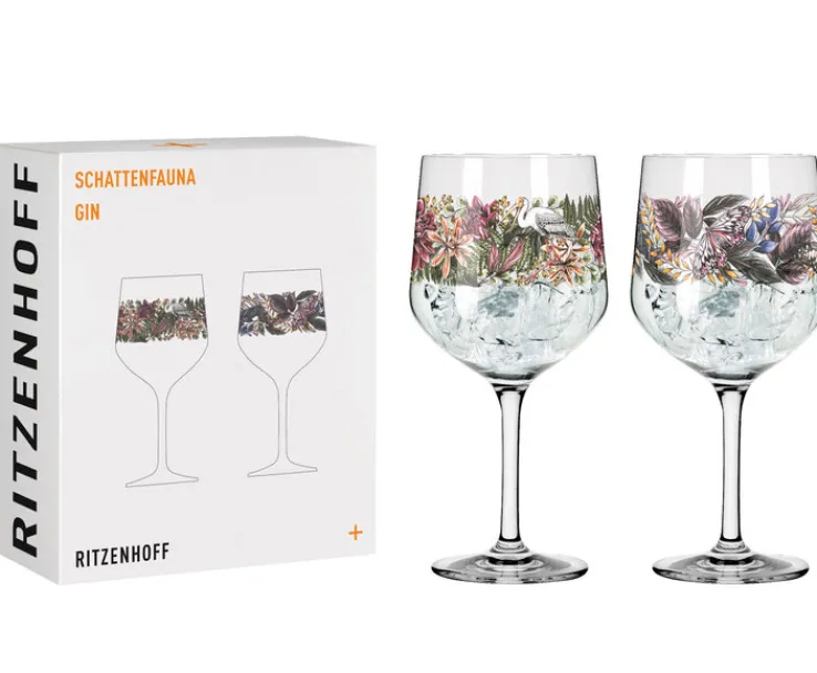 SCHATTENFAUNA I – der Gin-Kelch, welcher vom Künstler M. ENTERRIOS gestaltet ist – präsentiert sich als elegantes 2er-Set des für Exklusiv-Gläser bekannten Labels RITZENHOFF. Der Glas-Hersteller, der jedes Glas in ein wahres Kunstwerk verwandelt, hat in Kooperation mit dem Künstler einen Kelch geschaffen, der wohl jeden Gin-Liebhaber in große Begeisterung versetzt. Das fantasievolle Motiv zeigt einen Schmetterling – das des anderen Gin-Kelches einen Storch. Damit passen die Gläser zum separat bestellbaren Modell SCHATTENFAUNA II.