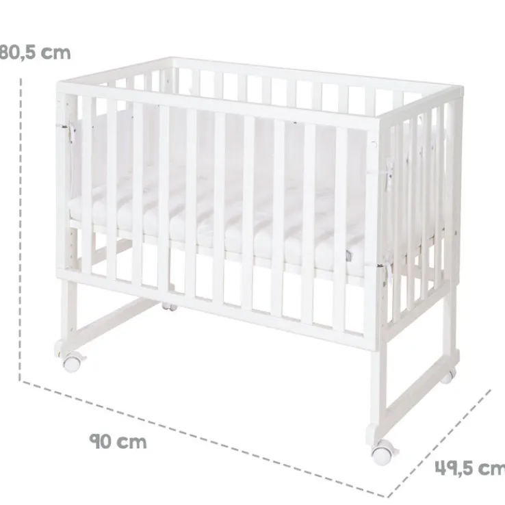 Der roba Stubenwagen 3 IN 1 hat eine Größe von 49,5 x 80,5 x 90 cm und bietet eine 45 x 90 cm große Liegefläche. Er kommt inklusive Matratze und Umrandung mit belüfteten Mesh-Einsätzen nach Hause. Der Stubenwagen lässt sich in der Höhe verstellen und ist als Stubenbett oder Beistellbett geeignet. Dank Rollen lässt er sich ohne Mühen zwischen den Räumen hin- und herschieben.
