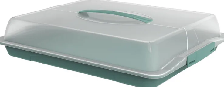 Mit dem grünen rotho Kuchenbehälter FRESH im Farbton Mistletoe bleibt leckeres Gebäck auch beim Transport in Form. Die rechteckige Kuchenbox hat die Maße 47,5 x 39 cm. Sie ist ideal zum Aufbewahren von Kuchen. Mit einer Höhe von 9,8 cm passen auch große Tortenstücke hinein, ohne zerdrückt zu werden.